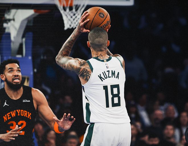 扬尼斯自然是不可阻挡,上半场金金出战12分钟,8中6拿到16分10篮板4助攻,命中率高达75%,罚球4个都进了。有了扬尼斯在攻防两端的威慑力,AJ格林上半场三分6中4拿到12分成为奇兵,替补席的库兹马4中4拿到9分3篮板3助攻,雄鹿半场打完还领先尼克斯四巨头1分(阿奴诺比伤停)。