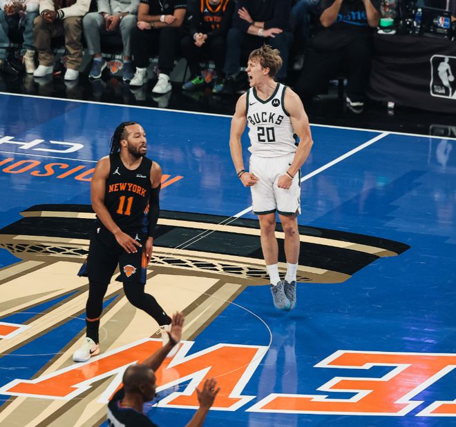 末节字母哥继续休息尼克斯一波9-0拉开分差,库兹马终于打破僵局,还剩8分钟27秒字母登场了。扬尼斯真的厉害他登场后雄鹿4分钟里将分差缩小打2分,尼克斯最大13分的领先优势荡然无存,布伦森制造三分犯规三罚全中,库兹马回应三分,布伦森又一个2+1,库兹马三分不中,字母哥对哈特犯规裁判看回放了,但没有升级哈特两罚全中锁定胜局。