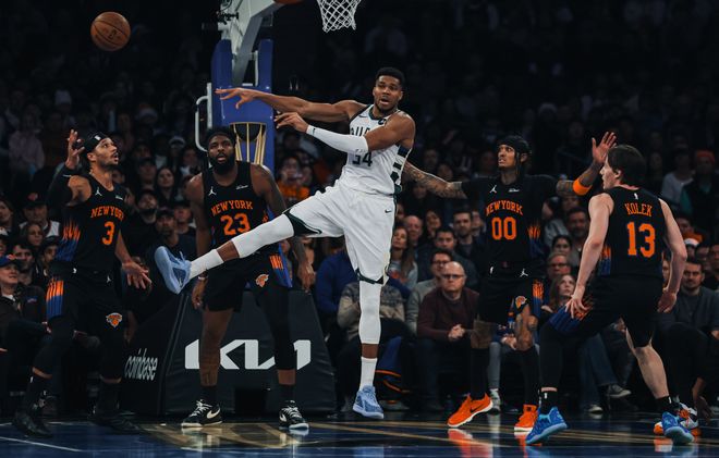 第三节扬尼斯只打7分钟,很明显他的伤势并没有痊愈还是有登场时间限制,三节打完22分12篮板5助攻。雄鹿先发已经4人上双,格林三节命中6个三分球,尼克斯依靠字母哥下场的时间将比分反超,布伦森三节已经拿到31分,哈特三节15+11+5很全面。