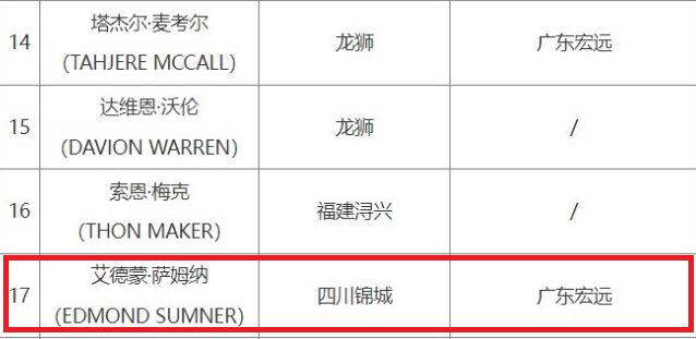 CBA官宣:广东交易获上季得分王萨姆纳优先续约权 四川卖人换钱