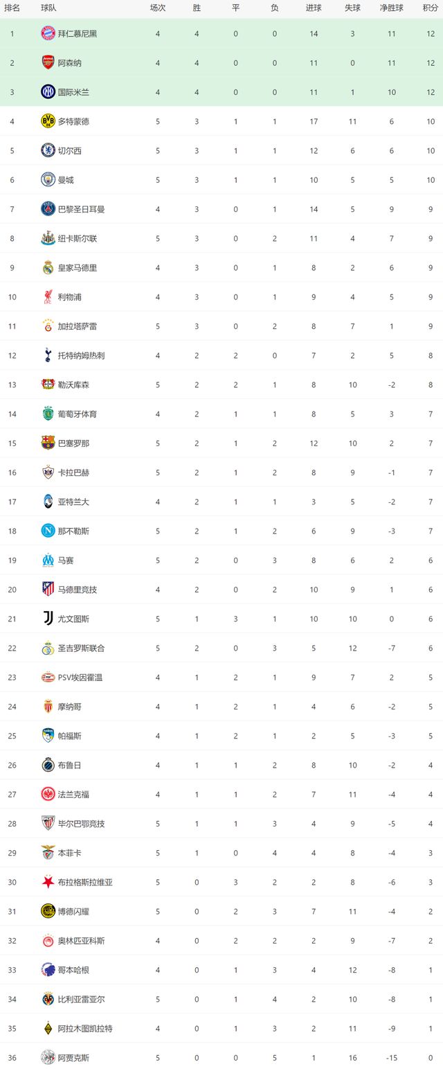 此役拿到3分之后,本菲卡本赛季欧冠前5轮踢完,终于有3分在手,他们也摆脱了垫底的位置,排名升上第29位,距离附加赛区,只有2分的差距,这家葡超豪门,也看到了竞争附加赛席位的希望。