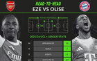 昔日水晶宫双星埃泽、奥利塞本赛季关键数据对比:后者均占优